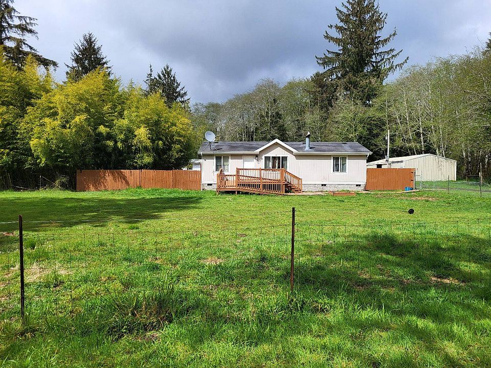 Private, rural parcel (6 acres) with 2005 manufactured home and shop (48 X 24, CONCRETE FLOOR, work bench) and carport.