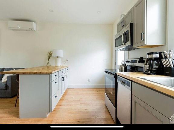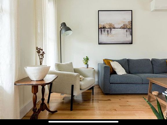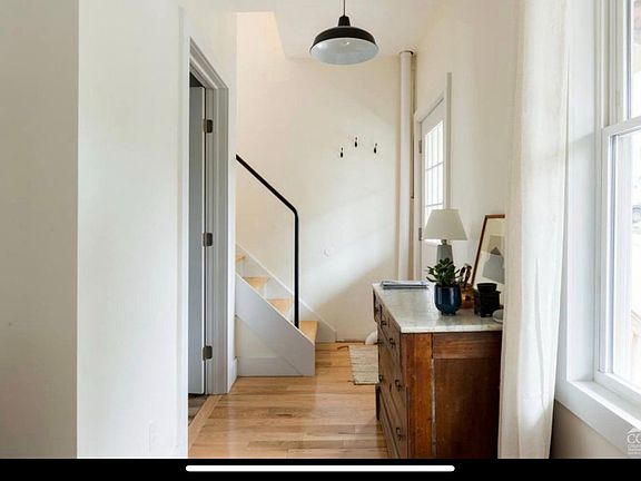 Bonus room for office/den/dining/guests Outdoor deck with garden views Backyard stone patio Covered front porch Hardwood floors Washer/Dryer Stainless steel appliances Butcher block counter bar with seating Mini-split AC/heating Double glazed windows 2 off-street parking spots Furnished or unfurnished Minimum credit score 675+, income 3x rent, credit/background/references/employment checks. **Please send confirmation of these minimum requirements along with requests to view.** Country modern living awaits with this vintage 19th century home renovated to contemporary standards. This is a two-story, 3 bedroom / 2 full bathroom house with a bonus flex room that can be used as office, craft space, guest room, dining room, or spacious dressing room and storage. Enjoy the outdoors with backyard stone patio for dining al fresco or gathering around a fire pit. Plant a tiered garden along the perimeter borders. There's enough space for two off-street parking spots. Vintage and modern furniture available to furnish. Walking distance to rail trail, Kingston Point beach, Kingston Roundout area with bars, cafes, boutiques, marina. Easy access to 9W connecting to New Paltz, Poughkeepsie, Saugerties and moments away from the Kingston/Rhinebeck Bridge. 5 minutes drive to convenient stores like Home Depot, Lowes, Target, Sam's Club, and Shoprite. Downstairs has a small apartment rented to a single person, and may be available as extended family apartment in the near future Owner pays water, sewer, garbage. Tenant responsible for clearing snow from their steps, deck, patio, parking spots, and yard maintenance. Downstairs apartment has the front patio as their outdoor space. The back area is for the upstairs house. All tenants to pay their own utilities on separate meters. Non-smoking indoors and around perimeter of house. Pets on a case by case basis only, if permitted, then $300 non-refundable fee with $25 per pet rent, with 2 pet maximum.