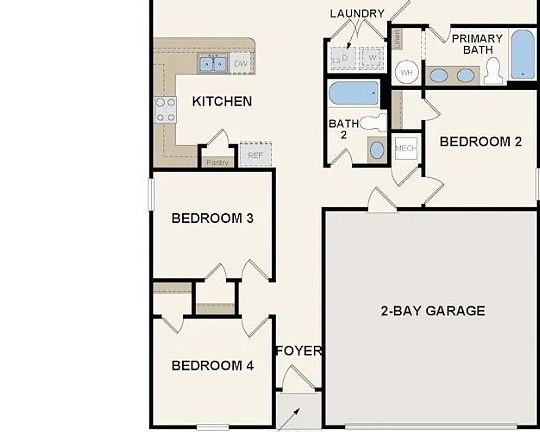 - Bedroom on Main Level, Dual Sinks, Eat-in Kitchen, Main Level Primary, Pantry, Tub Shower, Walk-In Closet(s), Great Room