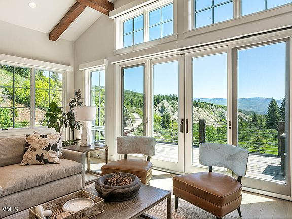 One of the most peaceful and private settings in the Vail Valley! This home is set in a small, quiet valley with only a few neighbors and an abundance of silence. The two-acres has a naturally fed creek and a beautiful pond. The home has been beautifully renovated striking the perfect chord of modern mountain transitional. The idyllic main level perfectly encompasses multiple, bright and functional spaces; the chef's kitchen and dining area are open to the expansive living room with the framed valley view. The breakfast/library nook is adjacent to the south facing patio and the lush landscaping. The primary bedroom suite, also on the main level, has luxuriously sized bathroom and a glorious walk-in closet. The lower level sitting room is flanked by three very large guest bedrooms. The big mechanical room provides ample storage space. Additional features include an office, three car garage, mud room with laundry, the sauna 'keg', and a wonderful water feature on the patio. All of this is located just one mile from The Summit Clubhouse.