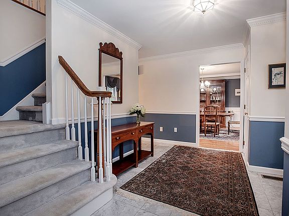An in-town location with ultimate privacy! Beautifully situated in a tranquil pocket enclave with perimeter screening and ideal Western exposure providing wonderful afternoon sun, this Colonial has a spacious and level backyard that leads to Open Space. Located mere minutes from town for shopping, schools, restaurants, entertainment, etc. The marble entry pulls you into the sun filled eat-in kitchen made for cooking, entertaining and family gathering with glass French-doors to a private deck. The totally updated kitchen includes large center island, granite counters, maple cabinets, stainless-steel appliances and coffee bar with beverage cooler. Step from there to the stunning, cathedral ceilinged great-room with fireplace and double hearth, then through French-doors, to the large den/library with space for a double office and/or remote learning plus glass French-doors opening to the deck. The main floor also boasts a beautiful dining room with oak floor, wainscoting, crown molding and 2 windows; a formal living room with oak flooring, crown molding and bay window; and windowed powder and laundry rooms. Downstairs, an expansive finished walk-out basement with 9' ceilings, a full bath, and access to the 3-car garage and backyard adds an extra element of spaciousness, comfort, and convenience. Upstairs you'll find an en-suite master bedroom with walk-in closet, 3 additional bedrooms and full-bath with double vanity. A spectacular home for entertaining and personal enjoyment!