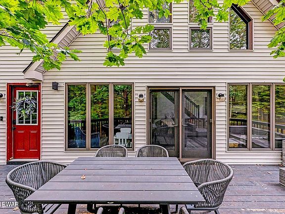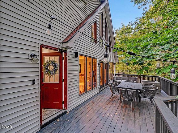 Located in The Hideout, a premier amenity rich community in the NE Poconos. This beautifully updated chalet features large bright open living spaces throughout the home. The open floor plan highlights the superbly designed kitchen, dining area and welcoming living room with an inviting wood burning fireplace. This home offers 3 bedrooms 3 full baths and has a spectacular master suite with en suite bath and walk in closets. The loft is large and airy, and is currently used as a 4th bedroom. A finished basement and picturesque deck give you plenty of room for entertaining family and friends.