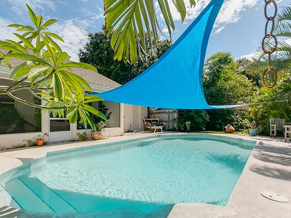 Move in ready home that exhibits the true love of the owners pride in home ownership. This 4 bedroom 2.5 bath home is located in a well manicured, lovely HOA community. It shows off beautifully laid Brazilian Cherry Wood floors that go throughout much of the house. The kitchen boasts of stainless steel appliances and a breakfast bar with a mobile small island. Formal living room, laundry room, sitting room that has lots of light. French doors lead to the screened in porch with a hammock, whichfurther leads to a nice size pool with a sun shade covering part of it. The tropical grounds surrounding the pool leads you to believe you are in your own little paradise that is fully fenced in. Close to the beach, PAFB, shopping, restaurants, airports and much more. Consider 1 pet 30 lbs or under.