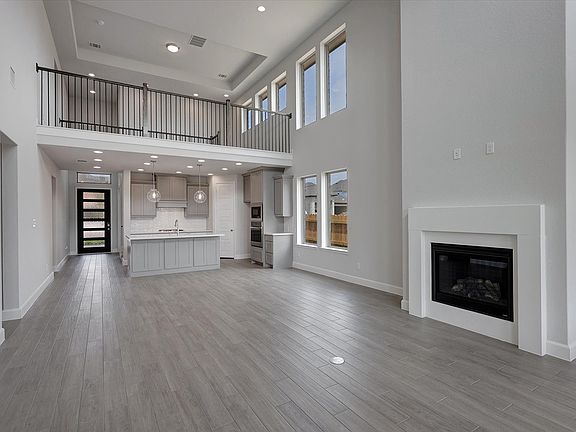 READY FOR MOVE-IN! Home office with French doors frame the entry with 19-foot ceilings. Island kitchen offers built-in seating space and a corner walk-in pantry. Spacious family room with 19-foot ceilings, cast stone fireplace and a wall of windows. Primary suite hosts a bedroom with three large windows, French door entry to primary bathroom with dual vanities, garden tub, separate glass enclosed shower and two-walk-in closets. Additional bedrooms with a walk-in closet on first level. Second level hosts a large game room, bathroom with dual sinks and secondary bedrooms. Utility room. Mud room just off the two-car garage.
