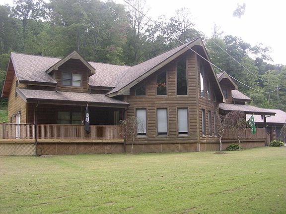 A log Castle and a Creek! Perfect home for living off the grid! Generac generator,spring plus public water. with 4 bedrooms each have their own full bath.Exquisitely designed kitchen with large island.Double staircase in huge living room with massive stone fireplace fit for a palace. Spacious master suite. Also fireplace in upper level family room. heated 4 stall garage. RV storage.Over 19 acres.