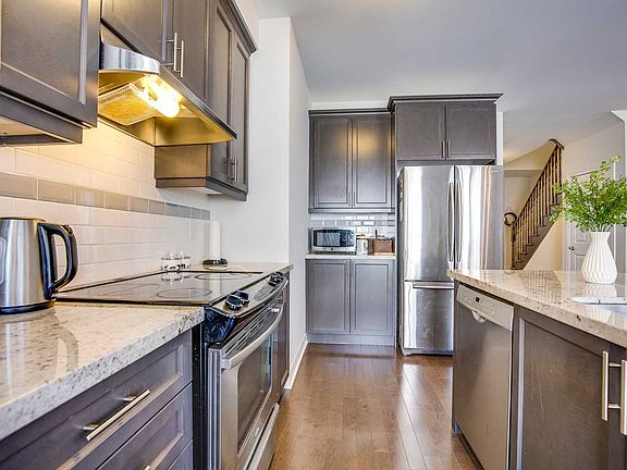 Welcome To This Two Year New Executive Luxury Town House And Make It Your Home! Enjoy All Of The Upgraded 1770 Sq.F. Everything Is Done Here - 4 Bedrooms + 2.5 Bathrooms. Energy Efficient House With 9 Foot Ceiling, Granite Counters In Kitchen And Mbrm Ensuite, Hrwd On Main Floor & All Stairs. Excellent Location With Unlimited Potential In North Oakville Upcoming Area, Close To