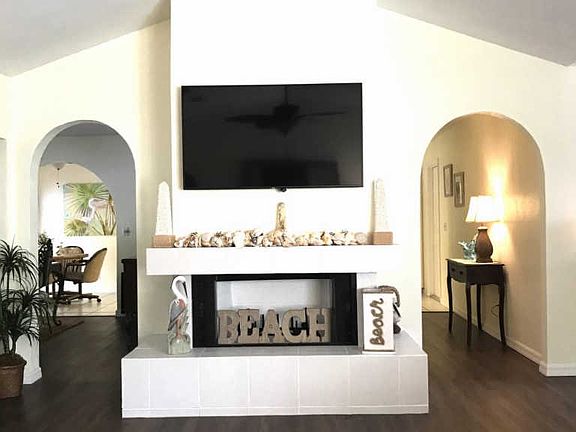 Remodeled Mediterranean interior! No costs were spared to make this a true dream come true! Beautifully upgraded! Formal model. Double door security entry, Open floor plan. Fab Master Suite. opens to private and large walled deck with new upgraded, overhead screening. Must check exquisite spa bath! 2nd BR bright, airy and it too has it's own walk in closet. Airy galley kitchen & breakfast area. Living room features fireplace, raised hearth and opens to sun room. Interior laundry, Garage with its own refrigerator, could be perfect man cave, heated and cooled, plenty of storage for all projects! VA or FHA financing not available.