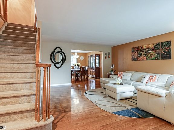 A private oasis invites you home with a serene backyard featuring an in-ground low maintenance heated saltwater pool & several outdoor living areas. This updated Colonial greets you w hardwood floors leading to a bright living room, dining room & a lovely eat-in kitchen. The kitchen which boasts granite countertops & gorgeous wood cabinetry opens to a family room opening to the backyard. Also on this floor is a brand new spa-like powder room & ample sized laundry room. Upstairs are 4 generously sized bedrooms & full bath. The ensuite master bedroom has 2 walk-in closets & high ceilings. Bonus is a fully finished basement w entertainment center, game room, private office, full bath & plenty of storage! Leased Solar panels