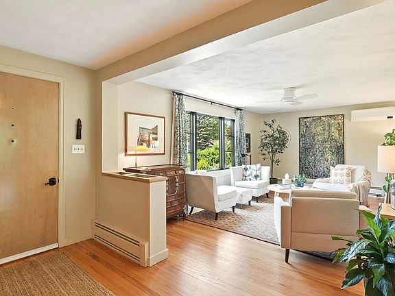 Whether you're looking for your first home or you are thinking of downsizing, this picture perfect home in Easthampton has all the details you're looking for! The living room has gleaming hardwoods and a new picture window that looks out onto the tastefully landscaped and private front yard. A nicely proportioned dining area blends seamlessly into the kitchen with newer appliances and has access to the oversized 3 season porch, already updated and insulated, perfect for nearly year round entertaining. Both bedrooms have the same fantastic hardwoods and large replacement windows, while the main bath has been gently updated with a new vanity, but retaining the lovely 50's tile. Ductless mini splits in the LR & BR, along with ceiling fans keep the home comfy in warmer months and a new boiler (2020) takes care of the cold winters. A new roof (2020) & owned solar panels (2021), make this home wonderfully energy efficient!