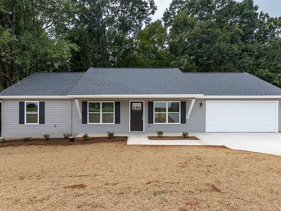 Welcome home to this stunning, brand-new construction nestled in the highly sought-after Ashbury Glen Subdivision in Easley, SC. This modern gem boasts 3 bedrooms, 2 bathrooms, and a convenient single-story layout, making it the epitome of comfortable living. As you approach the property, you'll be greeted by the sight of a spacious .62 acre lot, offering plenty of room to enjoy the outdoors and create your own private oasis. The attached 2-car garage ensures your vehicles are protected while providing extra storage space for your convenience. Step inside, and you'll immediately fall in love with the open floor plan, highlighted by vaulted ceilings and an abundance of windows that flood the space with natural light. The combination of carpet and luxury vinyl plank flooring creates an inviting and elegant atmosphere throughout the home. The heart of this residence is the beautifully appointed kitchen, featuring granite countertops, stylish cabinets, and high-quality finishes. Whether you're an aspiring chef or simply love to entertain, this kitchen is sure to impress and make meal prep a breeze. With a total of 1,435 square feet of living space, this home offers ample room for relaxation and entertainment. The 3 bedrooms provide comfortable retreats for the entire family, and the 2 well-appointed bathrooms ensure convenience and privacy. Located in the desirable Ashbury Glen Subdivision, just a short drive away from downtown Easley shopping and schools. Don't miss the opportunity to make this new construction home your own, where modern elegance meets spacious comfort. Schedule a showing today and start living the dream of homeownership in style!