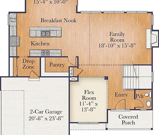 - Floors: Hard Wood, Wall to Wall, Ceramic Tile