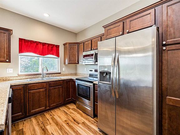 End unit two-story condo in a great location. Spacious with an open concept floor plan and LVP on the main level. Kitchen with stainless steel appliances and a breakfast bar with pendant lighting. Nice view out of the back of the home including mature trees and evergreens. Deck off the dining area. Upper level with primary bedroom and bath with a walk-in closet. Bedroom 2 has a walk-in closet and the front bedroom is quite large. Nice views out of the upper level. Large hall linen closet. Laundry room is centrally located on the upper level with a Samsung Energy Star washer/dryer with steam. Walk out lower level with a large family room, a full bathroom and extra storage room. LL bathroom has a luxurious whirlpool tub with stylish tile work. Backyard private patio for relaxing and enjoying nature. Very close to parks and also shopping and restaurants. Pet Policy: 2 large dogs is the maximum.
