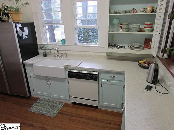Inviting bungalow right off of West Main Street. So much of the original charm with updated roof, heat, windows, water heater, kitchen, and some appliances. Charming kitchen and breakfast room have vintage cabinets with new solid counters, pass way to sun porch, and a new farm house sink. Great flow from the kitchen, breakfast room, dining room, and living room. Large rear sun porch with crank windows overlooks the back yard. Hardwoods throughout the living areas and original small tiles in bathroom floors. The walk up attic is wonderful for storage or could possibly be converted into additional living space. There is a detached storage shed that could house a smaller car and a fenced play area in the back yard. The dining room is currently being used as a den.