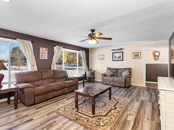 Ranch style home with well designed kitchen, fun for cooking for 1 or many. Open to large dining/sitting room with used brick wall and fire place. Living room is spacious and over looks the front yard. Down from the kitchen is laundry area, 1/2 bath and a beautiful sauna for those cool Montana nights! Primary suite comes with full bathroom and a walk out to covered hot tub area room, fun for everyone! There are 2 more guest bedrooms and an office that share a full bathroom, along with second 1/2 bath. The lower level boasts entertaining space galore! Stand behind bar and stools and room for table and chairs too. Current owners love for pin balls machines showcases their fun. After sale, plenty of room for ping pong, pool table or corn hole. The triple car garage is