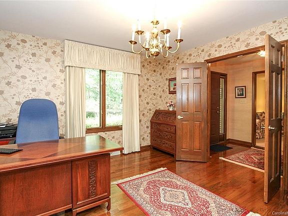 Very well cared for all brick ranch tucked back into heavily wooded 2.57 Acres. Large sunroom to enjoy nature and the serenity of this neighborhood. Beautiful HW floors in Dining Room, Family Room, Foyer. Tremendous kitchen and breakfast area with serving bar open to family room. Great area for entertaining friends and family get togethers.Loads of storage areas, huge laundry/mud room, cozy den with fireplace. All bedrooms are large, hall bath renovated 2019, new garage door 2020 and exterior trim painted, HP replaced 2015, microwave 2019. 32x28 brick 2-car Garage/workshop detached and 2 car garage attached with storage room. Great school district, low Union County/Weddington taxes, convenient to shopping, 485, hospitals, restaurants. Great lot for pool and play area.