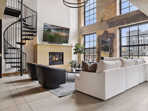 Historic North Star Lofts is a boutique 37 unit building located in the heart of the Historic Mill District along the Mississippi Riverfront. Dramatic "True Loft" with 24-foot ceilings, double height windows, exposed brick and concrete floors, beams, and columns. Incredible views of the downtown skyline. Freshly renovated kitchen with top of the line appliances. A spiral staircase leads to the upper level loft, open to the space below, and adjacent to the private rooftop deck with incredible sunsets. Two tandem parking stalls large enough for 4 cars or 3 cars with extra storage, which is the current situation. Fabulous spacious owners suite with a gas fireplace and skyline views. The fitness center and conference room are located near the foyer of the main level entrance, which is on level 3 with the main guest parking. The lower level entrance steps out to West River Parkway and the Stone Arch Bridge on level 1, with additional guest parking. Just a short walk to Gold Medal Park.