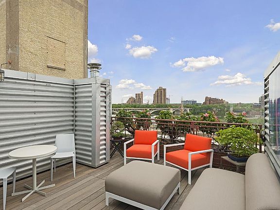 North Star Lofts Penthouse with private rooftop deck! This landmark property is one of only two top floor Penthouse homes with private roof access, available for the first time since original renovation in 1999. Very rare opportunity to purchase a home of this caliber in one of the most recognized buildings in Minneapolis. Sweeping views & stunning open entertaining spaces featuring sleekly renovated gourmet kitchen & bathrooms, original exposed white-washed brick, very large owner's suite.