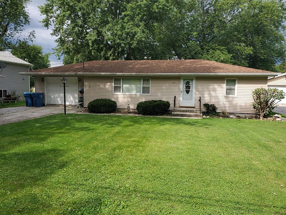 Great location....located close to Historic downtown Lowell. Welcome home to this ranch style home featuring hardwood floors throughout oversized living room and bedrooms. New laminate in Kitchen, new Hot water heater, newer windows, siding and entrance doors. With almost 1000 sq.ft this home offers 2 larger bedrooms and 1 bath, laundry/ mud room with extra shower, an oversized 1 car garage plus a large storage shed located in the fenced in yard. Make your appointment today this one won't last long!!