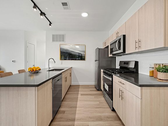 Introducing Prospect Crossing, Bayonne's newest luxury apartment building in the heart of town. Step into Unit 404, a rare 2-bedroom 2 bath corner residence. This unit offers a thoughtfully designed open-concept floorplan and features stylish LVT flooring throughout. Oversized European windows flood your home with natural light, while high-end kitchens boast granite countertops, subway tile backsplashes, and brand new stainless-steel appliances. Walk-in closet and ensuite bathroom in the primary bedroom. Enjoy the convenience of an in-unit washer and dryer, along with central high-efficiency cooling and heating for year-round comfort. Residents also benefit from our private fitness center, residence lounge and a private rooftop offering unobstructed views of NYC. Indoor garage parking is available, ensuring secure and convenient parking. Located just a 5-minute walk from the 22nd Street Hudson-Bergen Light Rail for easy access to transportation into NYC. offering one month free on a 13th-month lease for a limited time, parking included on select units, call today and schedule a private tour! Net effective pricing