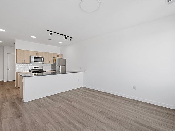 Introducing Prospect Crossing, Bayonne's newest luxury apartment building in the heart of town. Choose from a variety of spacious studios, one-bedroom + dens, and two-bedroom apartments, each thoughtfully designed with open-concept floorplans and featuring stylish LVT flooring throughout.Step into top floor unit 508 that features oversized European windows with NYC views, while high-end kitchens boast granite countertops, subway tile backsplashes, and brand new stainless-steel appliances. Enjoy the convenience of an in-unit washer and dryer, along with central high-efficiency cooling and heating for year-round comfort. Residents also benefit from our private fitness center, residence lounge and a private rooftop offering unobstructed views of NYC. Indoor garage parking is available, ensuring secure and convenient parking. Located just a 5-minute walk from the 22nd Street Hudson-Bergen Light Rail for easy access to transportation into NYC. Offering two months free on a 18th-month lease for a limited time, call today and schedule a private tour! Net effective pricing