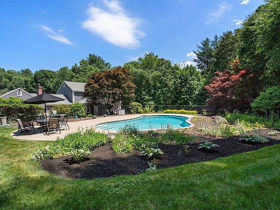 If it's privacy your looking for your search is over! Beautiful lush landscaping, stone walls and stone patios with a gunite pool is all here for your total relaxation. Custom Colonial with updated roof, Anderson windows and newer siding .Enter into the family room from a beautiful stone patio and steps. Woodstove insert to keep you warm and cozy and beautiful pine floor with Anderson slider leading to another stone patio that leads to the pool area. The kitchen is a cook's dream and perfect for entertaining, The large granite island seats 10 .Stainless steel upgraded appliances and recessed and pendulum lighting. Formal dining room with wainscotting and pine floor. Front to back formal living room to host all your events in. Pantry and laundry room and half bath complete the first floor. The main bedroom has walkin closet and a tiled sauna with real gold trim for your total relaxation! Three more bedrooms and full bath upstairs. All you have to do is complete the flooring in basemen