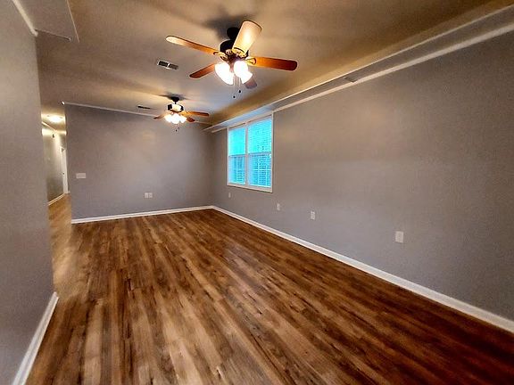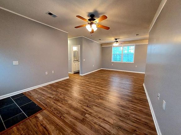 LVP throughout home, ceramic tile in kitchen and bathrooms. Large storage/ pantry area off kitchen/ dining area. Ceiling fans throughout home. Central heat and air. Large master with double closets. All bedroom closets have closet systems installed with lighting. Nicely sized bedrooms.