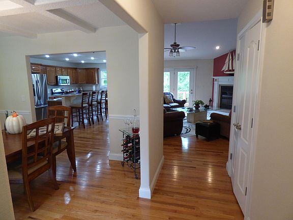 beautiful 3 bedroom, 3 bath home approx 2094 sq ft, setting on 1.46 acres that touches Deer Creek Golf Course, this home has hardwood, tile and carper floors, a formal dining room, beautiful livingroom,-kitchen combo with cathedral ceilings and fireplace w/gas logs, lots of cabinets with solid surface counter tops, stainless steel appliances, refrig, range/oven, microwave and dishwasher all stay with home, master bedroom has door out to sunroom and deck with a whirlpool tub in master bath, shower and double sink, this property has a gazebo with a creek running thru full length of back of property with a small bridge over a small water falls, large yard and just across the street from tennis courts, playground and swimming pool