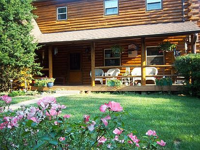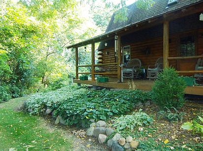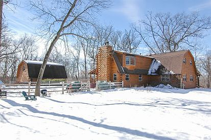 Your search for the ultra-special, unique and well maintained home is over! Spectacular log home/mini retreat is surrounded by mature hard wood trees and alive with wildlife, complete with private built in pool and hot tub. It is nestled in the woods, but convenient to everything. Hickory hardwood floors. 2 fireplaces. Log staircase. Detached log garage has ample loft area for storage/studio. Wrkshop in fin basement