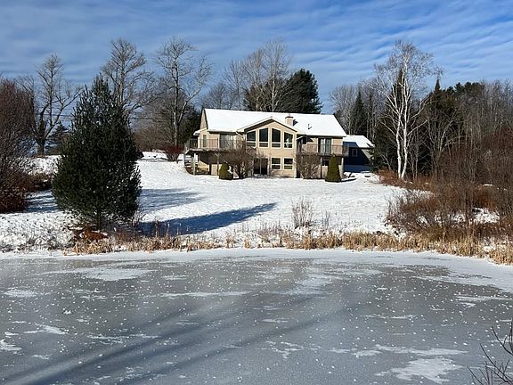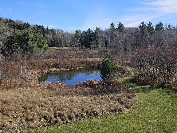 This wonderful home boast 10.5 +/- acres, plenty of room for gardening, a pond and is only moments to the village center! Beautiful hard wood floors throughout, Livingroom with gas fireplace a a beautiful view, dining area and kitchen, 3 bedrooms, 2 bathrooms, 2 decks and a simple 1 car garage. The lower level boasts a walk- out, is completely dry and waiting to be finished!