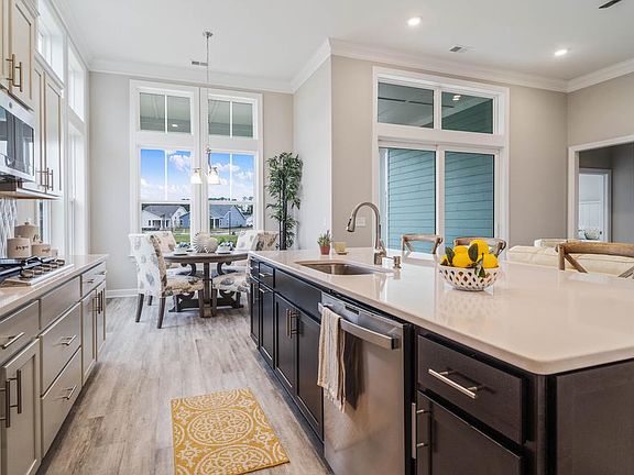 Walk into the Goldenrod with nearly 2,200 square feet of first-floor coastal-inspired features. Upon entering from a large covered front porch, discover a foyer with an optional tray ceiling leading to a spacious wide-open living area. Two bedrooms with large closets and a full bath are located on the left with an open dining area just ahead. Choose to add an intricate coffer ceiling across from optional built-in cabinets or beautiful french doors. Create an intimate great room area with a tray ceiling or gas fireplace.A large, gourmet island in the kitchen offers additional seating and a surplus of counter space for large dinner parties or cooking large meals. Enjoy smaller meals with an extended breakfast area looking out onto the beautiful view of your backyard. From the great room, breeze through sliding glass doors onto a large covered porch. The Goldenrod's master suite offers an enormous walk-in closet accompanied by a beautiful master bath with multiple options for a deluxe seated shower or deep soaking tub.This home offers a second-floor plan that adds a bedroom, full bath, walk-in closet, and linen closet alongside a spacious loft area. Use this space as a large guest suite, media room, storage, or recreational room. With options for personalizing this model to fit your every need, the Goldenrod is full of possibilities. Make the Goldenrod the model you call "home" today!