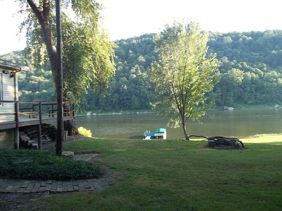 Your river front home awaits! Spacious home on 165 ft of river frontage, yes I said 165 feet ! This lawn slopes nicely to the river for great outdoor entertaining, there are no steps or hills to get to the river, This home has an open floor plan on the main floor and huge windows give you beautiful river views from 3 sides, wood burning fireplace for cozy winter nights, open concept kitchen, living room and dinning room then step out onto that huge wrap around deck and there is that beautiful river, gorgeous views, dock is included in sale, some furniture can be included. This is prime river front property, spacious lawn for fantastic outdoor entertaining!! This is the river home you want, must see!