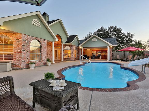 Spectacular home with a pool and outdoor kitchen! Beautiful open custom designed floor plan features: 3 bedroom, 2 bath, a large kitchen with a sprawling island, a spacious living room and a 3 car garage with an abundance of storage. The master suite is HUGE with 2 walk-in closets and french doors that open to the patio & pool. The backyard is designed for taking entertaining to the next level! The pool is complete with a slide and mature landscaping. The real show stopper is the outdoor kitchen! A full bathroom, slab granite counter tops, glass garage door enclosure, movable island, grilling vent..this space is set up for year around enjoyment!