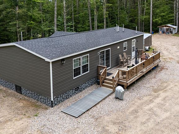 Beautiful like new manufactured home located on a nice 2 acre lot just off Route 16 so convenient but private. This spacious home has an open concept with three bedrooms, primary bedroom on one end with private bath and walk in closet and the two bedrooms and bath at the other end. Family room includes built in entertainment wall with electric fireplace and space for a big screen tv! The spacious kitchen/dining equipped with like new appliances, an eat at island and lots of cabinets. There is central A/C and a whole house generator! Upon entering the front door you are greeted by the large living room which flows nicely into the kitchen and dining room. Large sunny 10x28 deck surrounded by privacy and perfect for entertaining! The lot is partially open but still wooded for extra privacy, Circular driveway. Deeded access to the Pine River where you canoe out to Ossipee Lake. Just about a mile from the state boat launch on Ossipee Lake. Indian Mound golf course and shopping center is less than 5 minutes away. 20 minutes to Wolfeboro and about 30 minutes to Conway.