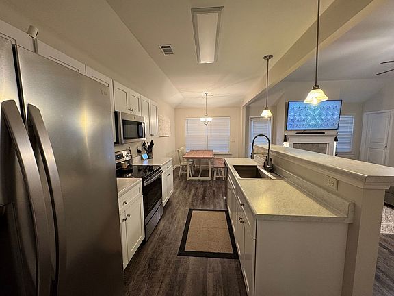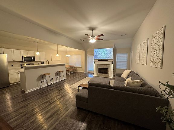 This home features a large master bedroom with a trey ceiling, walk-in closet and a master bath with a double vanity, garden tub and separate shower. The Living room is central located with direct access to the kitchen and back porch. The kitchen is spacious with modern appliances. It is located off the living room with direct access to the laundry and garage. The front bedrooms are both spacious. Call today to schedule your private showing.