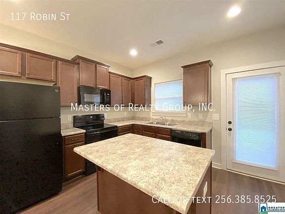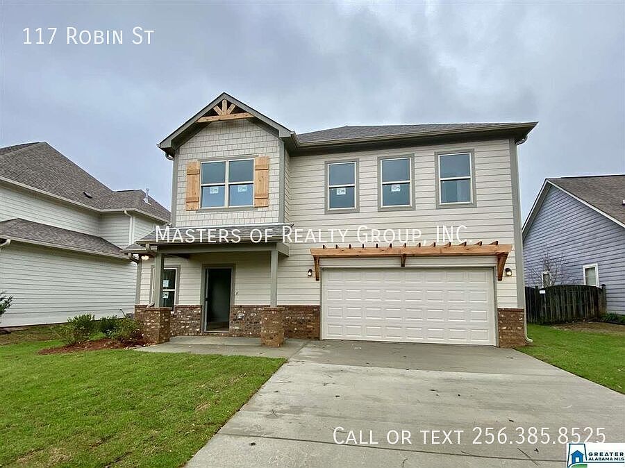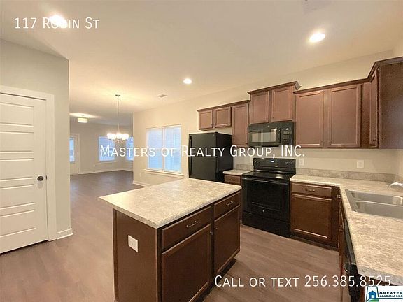 117 Robin St, Calera, AL 35040. Available on 9/12! 4-BD | 3-BA 2090 sq. ft. $1,850 /month Appliances included: Dishwasher, Freezer, Microwave, RangeOven, Refrigerator, and A/C Additional Features: Large Closets, Double-Pane Windows, and Garage-attached *This home is newly constructed and offers laminated hardwood flooring in the main living areas and designer colors throughout. *Featuring TWO Master Suites - one upstairs and one on the main level - you'll have plenty of room for everyone in the household. *Upstairs, you'll also find a second loft living area. *Pet-friendly home! You can also apply early for this property! NOTE: Any other listings that are not posted by Masters of Realty are SCAMS and we will not ask for money to be wired or sent via Cash App/Venmo or similar.