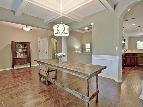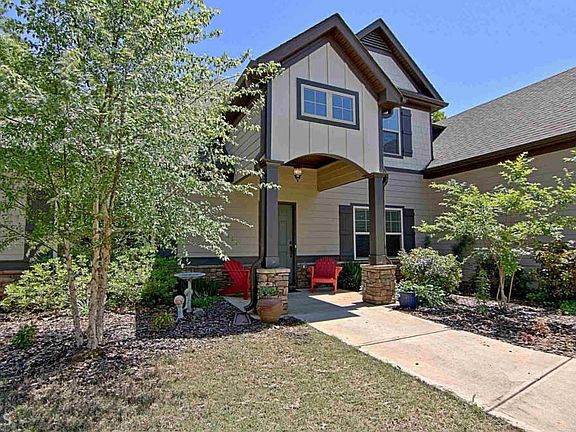 GREAT PRICE! Terrific open floorplan in Rock House Ridge in Senoia! Huge 2.3 acre lot - you can't even see the back fence! Two outbuildings, a garden area, fruit trees - peach, pear, fig, crabapple and plum - PLUS grape/muscadine vines! Open floorplan for entertaining or gathering with your family. Huge owner's suite on the main level with extra-large tile shower, soaking tub, great walk-in closet, plus two additional main level bedrooms. Spacious kitchen with granite, stainless steel appliances and breakfast bar. Breakfast room opens to covered patio with cable TV connections for a game-day porch. Great laundry room. Upstairs has another full bath, bedroom and large bonus room that could be a 5th bedroom or big playroom or media room.