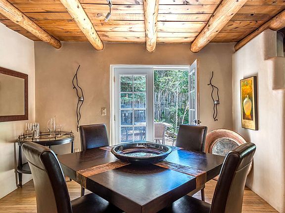 Located in Historic Eastside, this condo offers endless Santa Fe Charm throughout. Featuring 2 bedrooms and 2 full baths, the numerous windows provide abundant natural lighting, kiva fireplace in living room and master, insulated windows, tile and wood floors. Kitchen with pass over bar, stainless steel appliances, neutral tile counter tops and white cabinetry. With forced air heating and refrigerator central A/C to keep you cozy in any season. The landscaped yard area features a koi pond with fountain, hot tub, lovely patio and deck that makes this home great for relaxing or entertaining. The home is wired for security system.