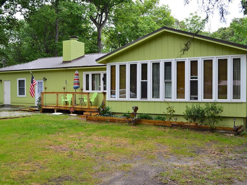 Stickbuilt rambler with lake access across the street. Upgrades include finished garage that include partitioned shop. Large backyard is fenced. Outdoor sheds, electrical and plumbing for extended functionality. Graceland storage building is wired with breaker panel. One of the two sheds may convey. Metal roof installed in 2014. HVAC system converted to ductless minisplits for high efficiency. Windows (Simonton) on the front of the house replaced in 2015. Master bathroom was expanded in 2015 eliminating a former third bedroom. Finished garage is suitable for an inlaw suit or apartment with separate entry and interior access (bathroom addition planned). Improvement plans include possible bathroom addition off the finished garage, deck replacement, and house painting (something neutral). Also planned are installed backyard exit door, and French door installation for access from the master bedroom to the sunpirch. This property offers Superb access to recreation opportunities with convenience to nearby boat landings and docks. In addition, this home also features an enclosed patio with air conditioning; wood burning fire place, large yard, tank less water heater, well and septic. Lake living within an hour of the Charleston commerce area, and a half hour from Summerville and Moncks Corner, and 20 minutes from the Volvo facility in Ridgeville. Great as vacation destination or residence. (Price will change once improvements are made. Otherwise, fast-sale offers without improvements would be considered.)