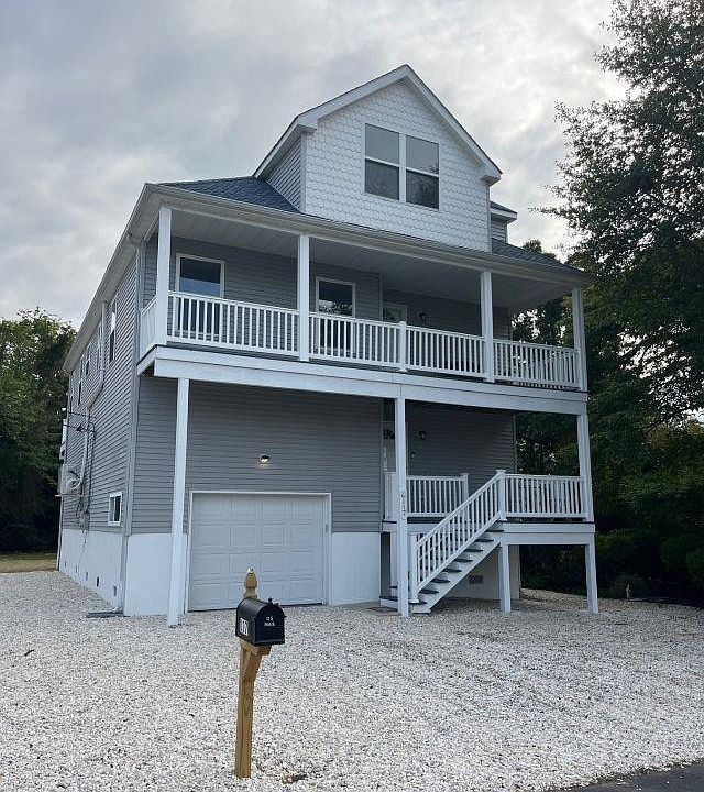Enjoy coastal living at this shore retreat! This spacious 3-story home set on a private end lot, next to a nature preserve, with BAY VIEWS!! Just a short walk to peaceful Del Haven Beach, this property offers the perfect mix of privacy and convenience. With multiple balconies and a three-season room it is the perfect blend of comfort and costal charm. The first floor has a family room with a full bath, access to garage, plus a bonus unfinished room with potential for a 4th bedroom. The second floor has a master suite with walk in closet and full bath for convenience, along with the living room with a gas fireplace. Open concept living with a bright eat-in kitchen with island, hardwood floor, stove and new dishwasher. Enjoy outdoor living on the rear deck or three season room. Laundry with full size washer and dryer is conveniently located on this level. The third floor has 2 bedrooms with ceiling fans and a full bath featuring a skylight. One bedroom includes VP flooring and private balcony, the other carpeted. Trek decking with vinyl railing on balconies and porch. Central air plus new 2 zone mini splits on 3rd story. New garage door with opener. This home is perfect for those seeking a peaceful retreat with easy access to the bay, beautiful sunsets and the natural beauty of Del Haven.