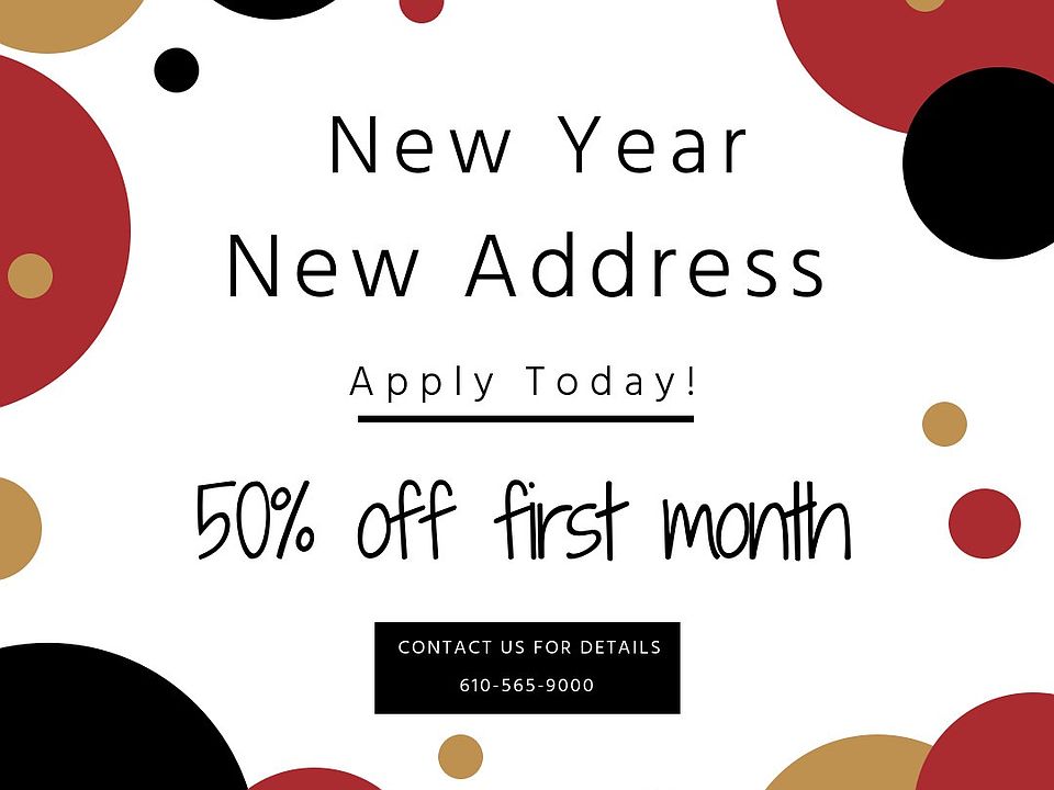 ** NEW YEAR MOVE-IN SPECIAL ** -- 1/2 off First Month's Rent -- Must Move-In by 3/15/2017 *Must meet application requirements* Walking distance to the center of town in Swarthmore which offers dining, shops, entertainment and public transportation. (Please Note: These photos are various photos from throughout the building.)