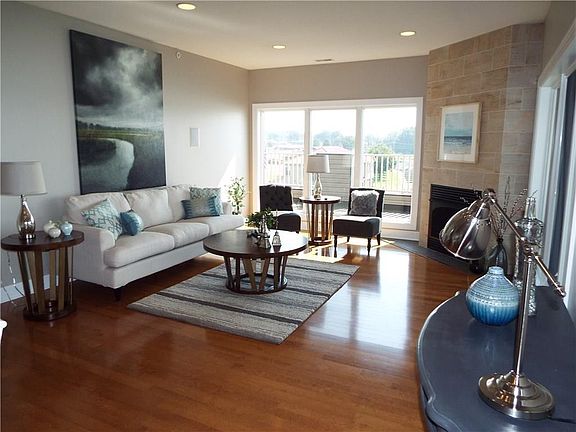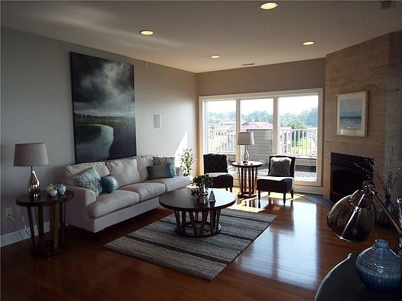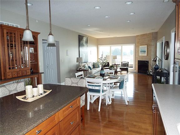 Updated condo with spectacular panoramic view of the lake from almost every room. If you're looking to come home and feel like you're at a resort, then this is the place for you. Relax on your wrap around covered porch or sun patio and take in the gorgeous lake. A spacious kitchen with appliances, solid surface tops with beautiful new tile back splash, granite island and a custom kitchen hutch compliment the beautiful hardwood floors that lead from the kitchen straight though to the great room. With three bedrooms, two full baths, space for your washer and dryer and a corner gas fireplace with brand new stylish tile surround, there is everything here you could want and more. Unit can be accessed by elevator or stairs. 1 Car detached garage. May consider trade. Live like you're on vacation everyday! Call today for a private showing of this beautiful condo.