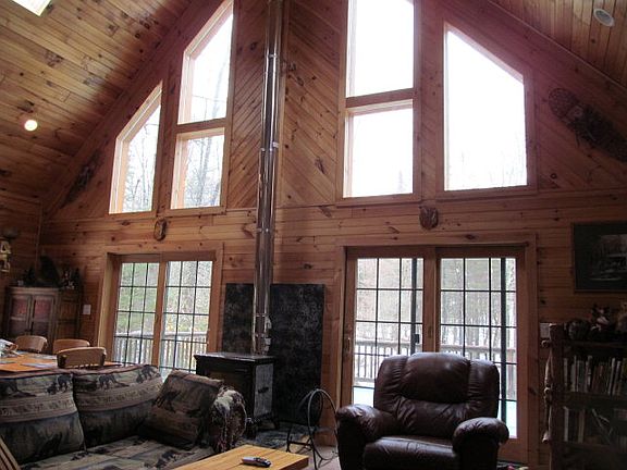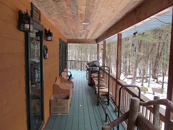 Custom built home with hickory cabinets and island, full appliance kitchen, locally mined granite counters and hearth, soapstone woodstove, living room has double sliders to go out to a large deck overlooking an all season trout brook, in floor hot water radiant heat, audio system, home theater, 3 bedrooms with master suite, jetted tub, large family room in finished basement, workshop/mechanical room, covered porch and deck, central vacuum, back up generator, walk to Siamese Ponds Wilderness area for endless ponds, streams and hiking, great rental income if one is looking to offset a mortgage $273,000.