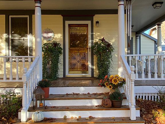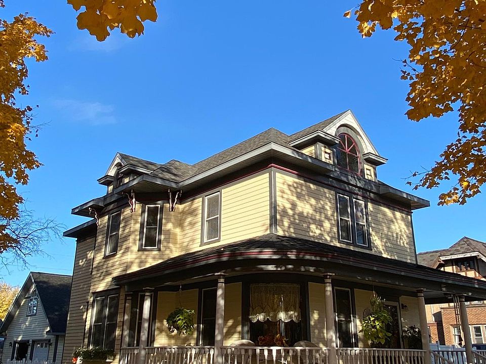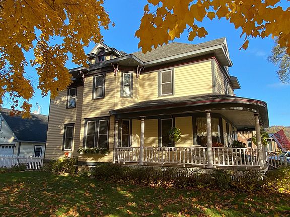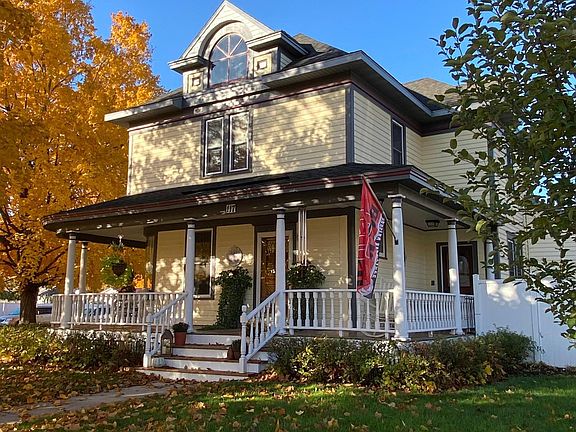 Small town living at its best in this beautiful historic painted lady! Many updates throughout. Enjoy the large front porch and mature, maple trees or find privacy in the back yard under the pergola. Entertain for the holidays in a large spacious kitchen. Located across from city park and close to schools. Fenced backyard and full heated room over garage to make your own.