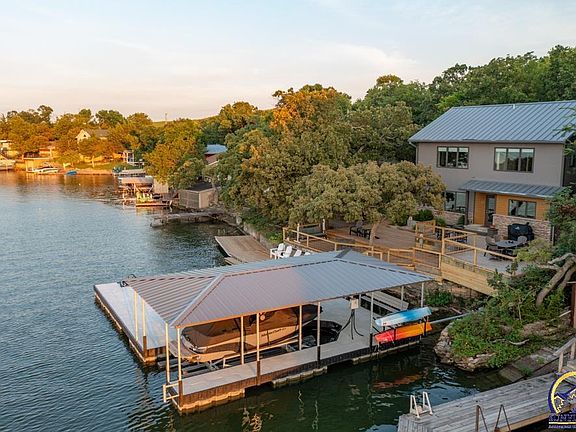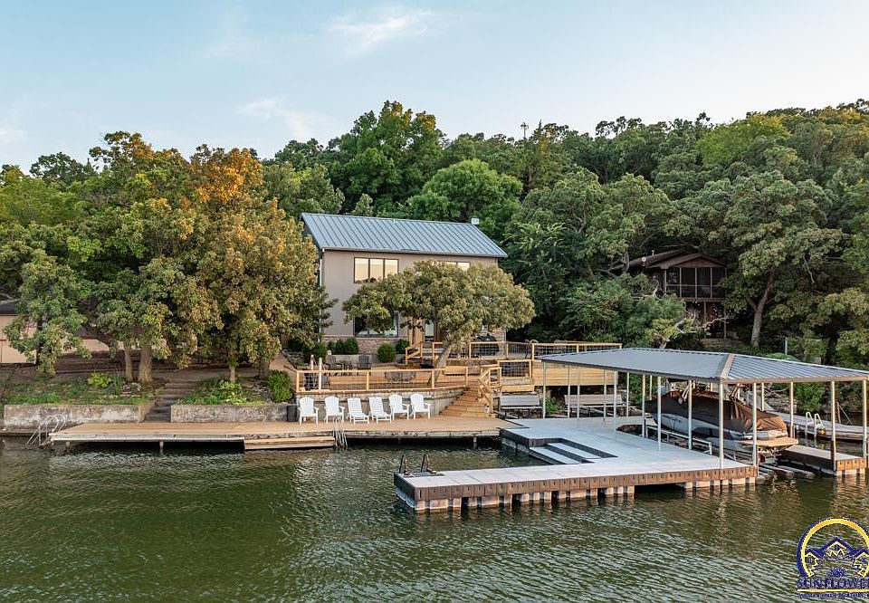 Located nestled in the heart of the lustrous Flint Hills of Kansas, sits the coveted Lake Kahola. A private spring fed lake that holds the most beautiful year-round scenery and shoreline, top-end fishing that everyone in the angler world raves over, open non-crowded water that allow endless boating activities and a place a peace far away from the hustle and bustle. A place to recharge, reconnect and build memories that will last a lifetime. Only 2 families have owned this lot since the early 1940’s and there is a reason why. It is a rarity for any property to be available to purchase on this lake, and even more difficult to find a property on the south side, then top it off and try to find a property on the deepest water with the greatest views, and this lake home has it all, and is the unicorn that comes around once in a lifetime. Cresting the hilltop that overlooks Lake Kahola, head west on the paved S. Kahola Kahola Rd. Take the turn in at Lot 117, just past the smoking cowboy. The setting not only provides a secluded feel, but endless shade and protection. There are multiple entry points to the residence with main level and 2nd level. One step inside the front door, you will feel how special this property is and the level of build and craftsmanship that went into it. From custom bamboo flooring throughout to top-end finishings and all in-between, this residence holds every want or need one could imagine. The kitchen is complete with granite counter tops, stainless steel appliances with gas oven and overhead vent, pantry, custom cabinets and water filtration purifier. The views throughout the main level are just as incredible as outside! The living room provides a peaceful space with fireplace. The bunk room is just off of the living room with 2 full beds allowing space for 2-4 sleepers. There is a full bathroom with tub and shower on the main level along with a spacious bedroom. Upstairs, not only is the space stunning, the views are too! From relaxing reading books, playing games or watching movies on the rain days or evenings after coming in off of the water, the family room holds endless opportunity. There is a full bathroom with shower just off. The laundry room with washer and dryer are located on this level as well with 2 double door entry. Head to the master suite, complete with closet, walk-in closet and master bathroom with walk-in shower. The home is constructed from ICF making it not only incredibly efficient, but incredibly resilient to weather while being low maintenance. While in the home, appreciate how impeccably quiet it is. The air flow throughout the residence is notable as well, pairing the ICF with the heat and air system, you can breathe easy. The roof is a 50-year metal grade. The residence is on a well which is located on the south side of the home. This well has never gone dry in the history of the lot and is used without filtration for cooking, bathing and drinking if you choose as you are in some of the most clean and pure country here, away from chemicals and impurities. Outside take note of the well thought out deck space which utilizes the lay of the land while capturing as much space as possible. Also notice the low maintenance needs of the entire property. No mowing and self-sustaining flowerbeds which allows you more time to enjoy the reason to be at the lake! With the location tucked behind the hillside, you are protected on the windy days with calm waters. The floating dock and boat house are the places to be and where you will spend the days away. Complete with cool touch concrete so bare feet don’t get hot, easy entry wet steps, swim ladder, kayak racks, seating and automatic boat life. The boat house is 28’ in length. The wake break is a thing of beauty and keeps the entire swimming area protected and calm. Below the water, the anglers will appreciate the fishing habitat that was carefully constructed.With Lake Kahola being a private lake, the boat numbers.