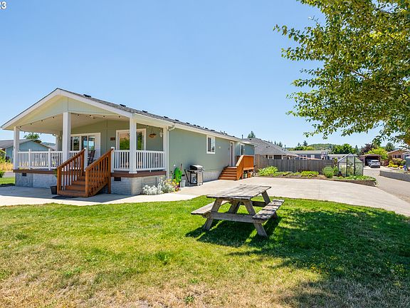 Lovely 3BED/2BTH home in Roseburg's Green District! Flat usable lot with easy access to schools, shopping, employment, and amenities of the Umpqua Valley. Recent upgrades include new roof, new interior/exterior paint, new HVAC, and new concrete skirting from Cornerstone Foundation System, LLC. Relax each evening on your covered front porch. In-ground sprinklers keep the yard and garden fresh. All kitchen appliances included! Call today for your private tour!