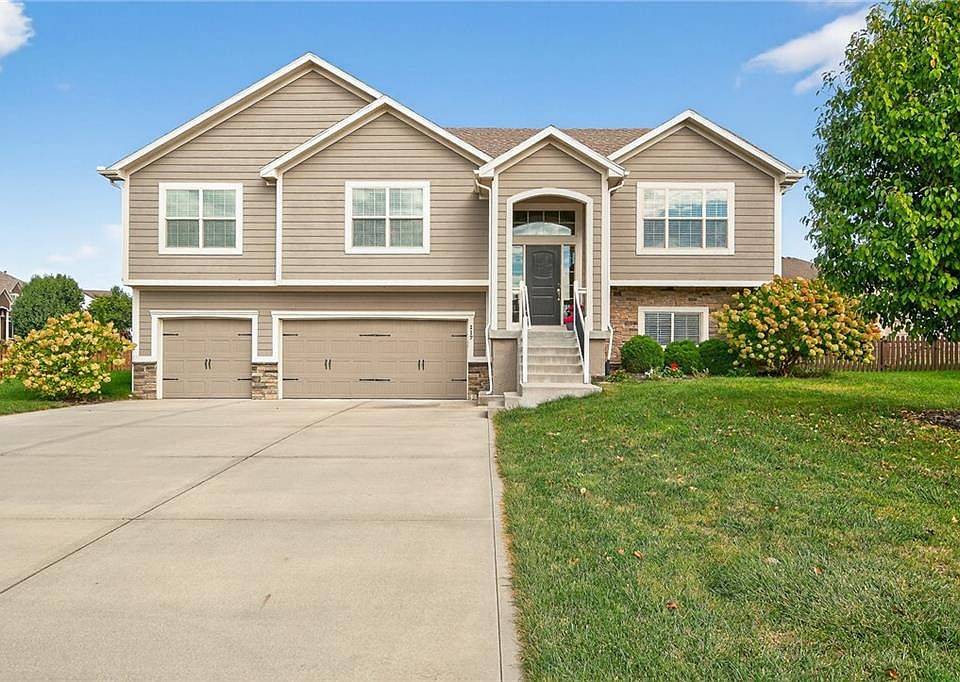 ***Seller Offering $5000 Towards Buyers Closing Costs with Accepted Offer by November 18***Exceptional Value in Raymore's Coveted Eagle Glen Community. This Move In Ready Gem was Built in 2017. THREE CAR GARAGE. OVERSIZED, Fenced CUL DE SAC LOT. Beautifully Maintained 3-Bedroom, 2.5-Bath Split-Entry Home Sits on Huge Corner Lot in a Quiet Cul-de-Sac. Step Inside to an Open-Concept Layout Featuring a Spacious Great Room with a Gas Fireplace & Newer Carpeting on Main Level. The Kitchen is a Chef’s Delight, Showcasing Granite Countertops, Rich Stained Cabinetry, Stainless Steel Appliances, Large Island, Walk In Pantry, and Dining Area. Retreat to the Primary Suite Complete with a Walk-in Shower, Double Vanity, and Walk-in Closet. Two Additional Bedrooms are Generously Sized, and the Convenient Bedroom Level Laundry Makes Everyday Living Easier. Downstairs, Enjoy the Finished Lower-Level Recreation Room with a Half Bath—Ideal for a Media Room, Playroom, Home Office or Could Even Be Easily Converted to a 4th Bedroom. Step Outside to a Huge, Fenced Backyard with a Nice Deck, Offering Plenty of Room for Play, Pets, and Gatherings. The Spacious Three-Car Garage Provides Ample Storage & Parking. Enjoy the Many Neighborhood Amenities Including Wooded Walking Trails, Resort-Style Pool with Cabana, and Separate Splash Pool. All of This in a Fantastic Location with Easy Highway Access. Don’t Miss this One – Welcome Home!