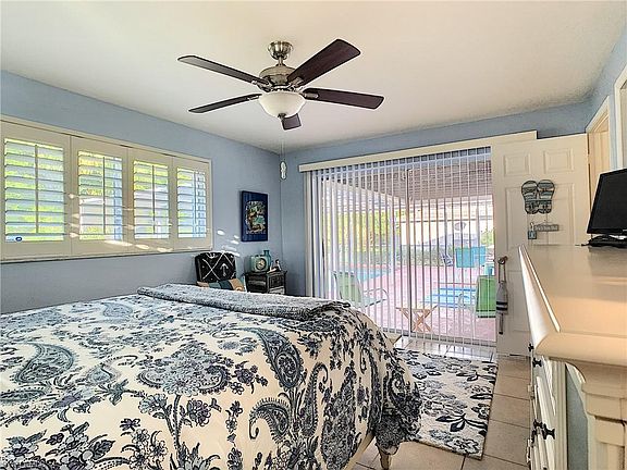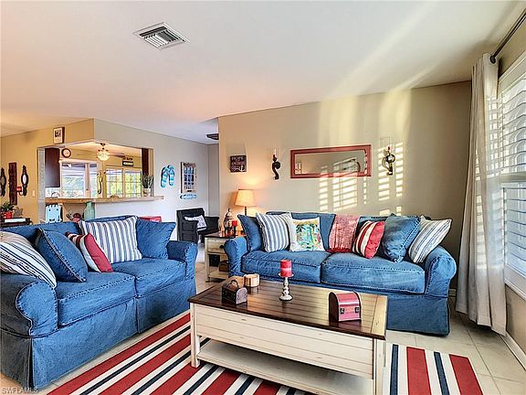 Picture perfect, updates throughout, move-in condition, NO water Assessments to worry about and ready for you to call home! Entry foyer welcomes you to this charming 2 bedroom home with newer impact resistant windows throughout, shaded with plantation shutters and offers 2 full baths and 16 in. tiles in the entire home. The spacious kitchen offers plenty of room to move with newer cabinetry, tile backsplash, stainless appliances, eat in area, break fast bar and a pass through window to your tiled outdoor bar and the large screened pool area with inground pool and tons of space to entertain. Other upgrades include AC change out in 2015 and roof in 2009. This home is complete with in ground sprinkler system and ADT security system. Situated in the desireabe SE area of Cape Coral and close to the downtown entertainment area, this little charmer will not disappoint! Come see for yourself!