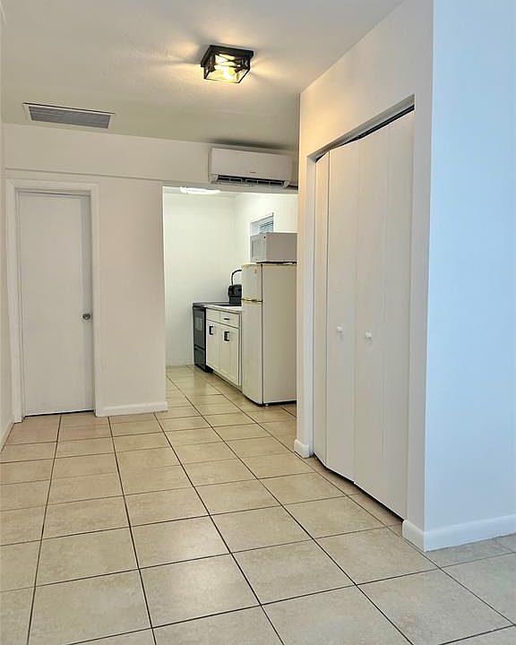 Freshly painted in crisp white, this luminous efficiency, attached to main house, features a brand-new kitchen with updated cabinets and countertop, plus essential appliances including new refrigerator, oven, and microwave. The space offers modern comfort with updated air conditioning, ceiling fans, and abundant natural light. Two convenient parking spaces. Electricity, water and sewer included in the rent. No condo approval needed. Ready to move in. Centrally located in a nice and quiet area.