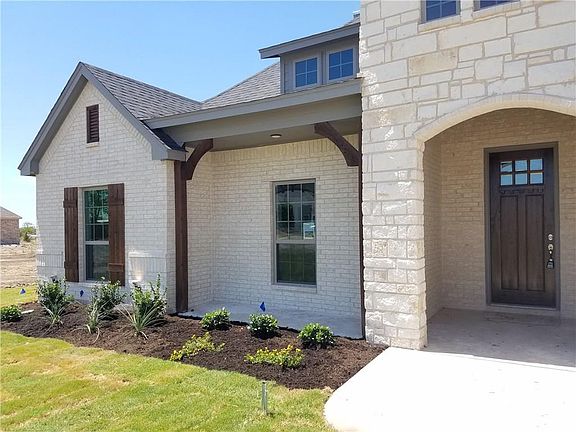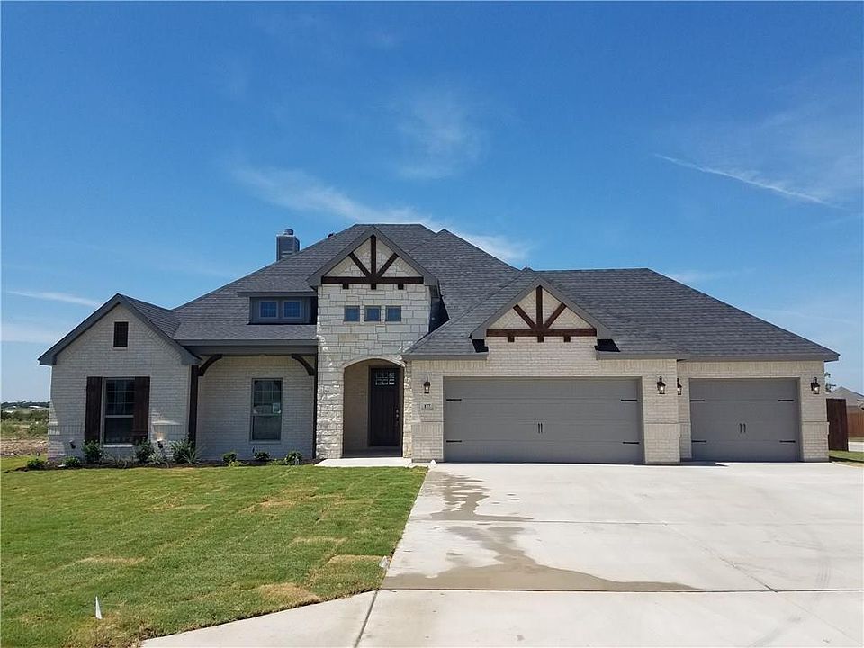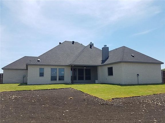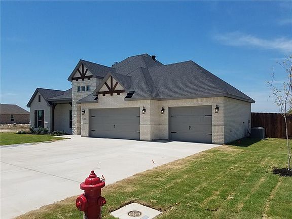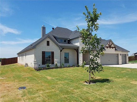 Awesome country living on one half acres, large corner fenced lot, irrigation, sod in front, and landscape package to front. Upgraded tile and granite throughout, with cool gray and white color theme. Open kitchen and family room. Exterior brick fireplace on covered back patio for lovely evenings on the porch. House has 3 car garage, garage door openers, and oversize front yard with tree and crepe myrtles. Exterior brick is popular white color, with comp roof.