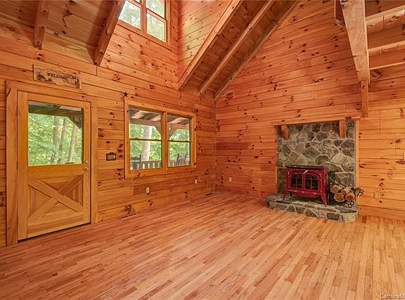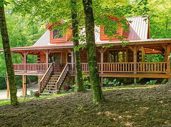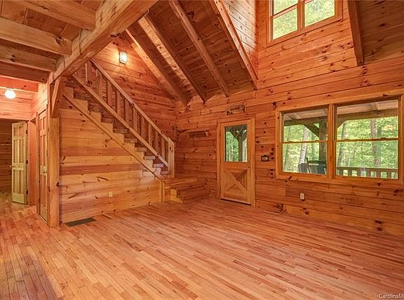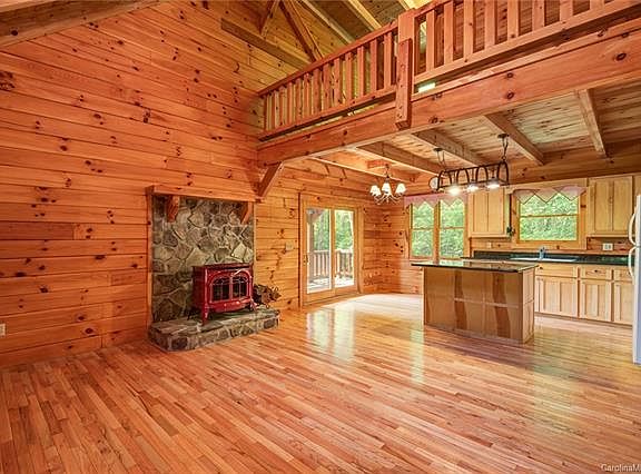 Wow! Beautiful and well maintained log cabin on level, private lot in Hawks Nest. SHORT TERM RENTALS ALLOWED! Soaring ceiling in the great room. Wonderful wrap around rocking chair porch for enjoying cool summer breezes. Private upstairs Master Suite with a loft that could make a great library/office/sitting room. Numerous trail heads and gated Forest Service roads within a couple miles of the home for your hiking and mountain biking enjoyment. Tons of basement storage, with plumbing stubbed in for potential additional bath. Only 30 minutes to Burnsville, and 35 minutes to Weaverville, and 45 minutes to Asheville. A great mountain get away, vacation rental, or year-round home! High Speed Internet through Country Cablevision, according to owner.
